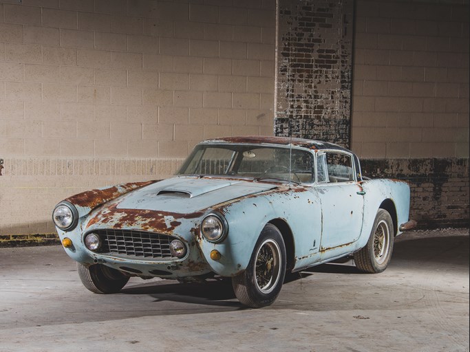 One such car is a 1956 Ferrari 250 GT Coupe Speciale by Pinin Farina. Originally owned by King Mohamed V of Morocco, this numbers-matching V-12 is one of just four ever made with Superamerica-style coachwork. Although it does show a bit of rust on the exterior of its powder blue paint (known as Celeste), RM Sotheby’s estimates it could sell for $1,700,000 to $2,300,000 even before any type of restoration.